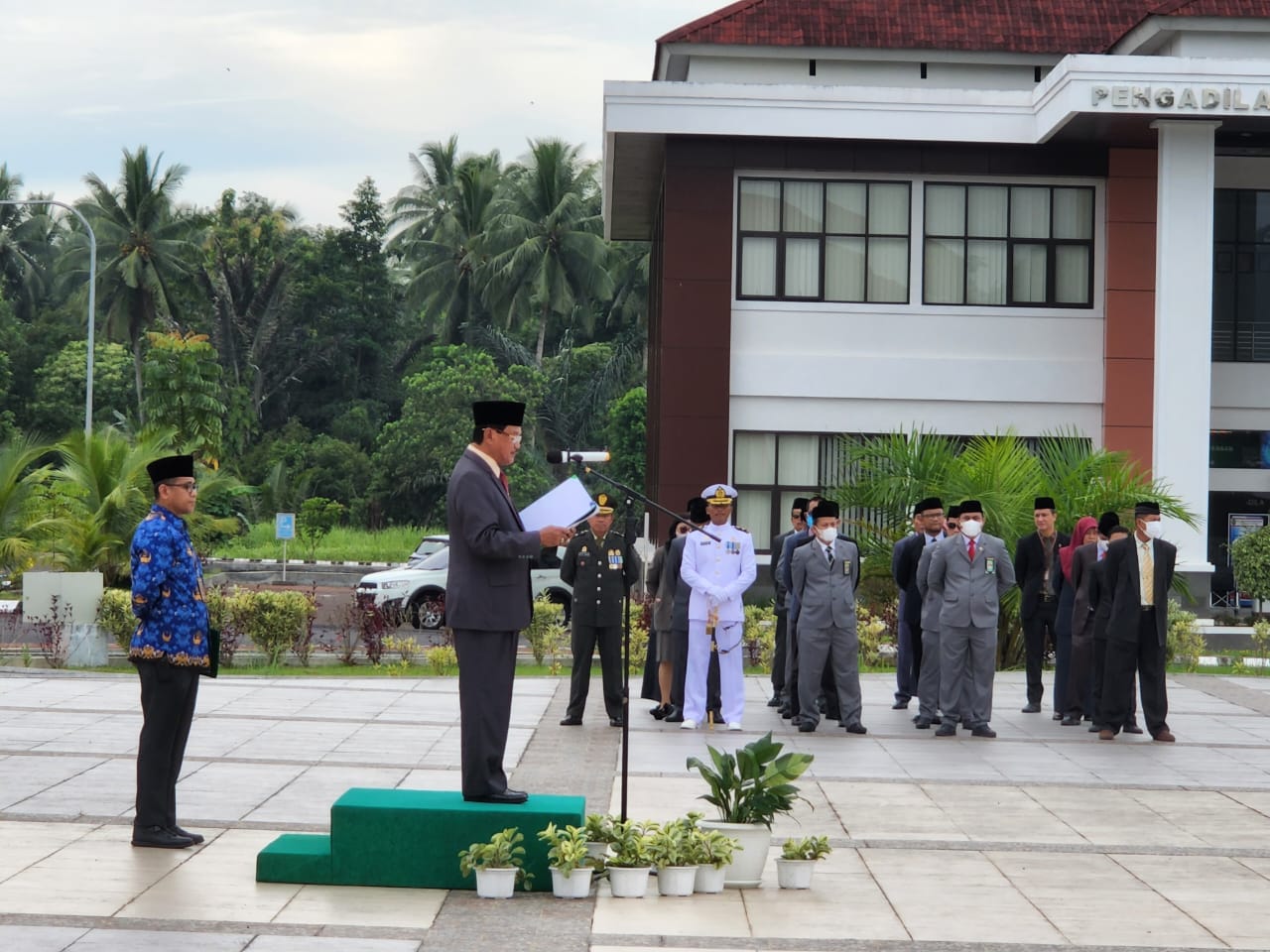 DR.Hi Lexsi Mamonto,SH,MH ketua Pengadilan Tinggi Sulawesi utara bertindak sebagai Inpekstur Upacara sedangkan Komandan Upacara Oleh Kapten Chk Prima L Yuduyono ,SH dan Letda Chk Zulkarnaen ,SH bertindak sebagai perwira upacara.