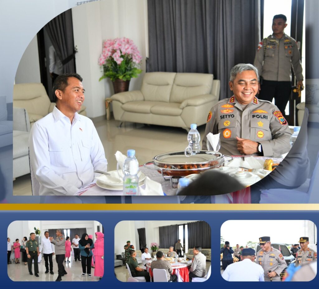 MOROPOTNEWS.COM.(13/5).Rangkaian Kegiatan Bupati Bolaang Mongondow Timur Sam Sahrul Mamonto,S.sos M.Si dibulan sawal 1444 hijriah/2023 masehi selain menghadiri kegiatan halal bi halal dibeberapa tempat bersama ketua TP PKK boltim Ny Seska Budiman,S.sos. juga Bupati pilihan rakyat ini menerima kunjungan dari bapak Kapolda Sulawesi Utara Irjen Pol. Drs.Setyo Budiyanto,SH,MH dan rombongan.